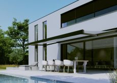 Zonnescherm Lux van Harol heeft een hele moderne uitstraling dankzij zijn strakke kast. Hierdoor is hij een perfecte match bij heel wat moderne nieuwbouwwoningen. Maar ook meer klassieke woningen past goed bij het zonnescherm Lux.