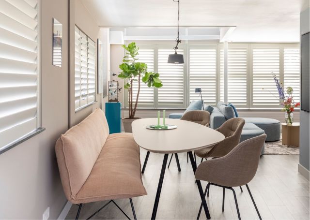 De shutters zijn verkrijgbaar in een breed assortiment aan stijlvolle lak- en beitskleuren. Ook in RAL classic-, Farrow & Ball- en NCS-kleuren leverbaar.